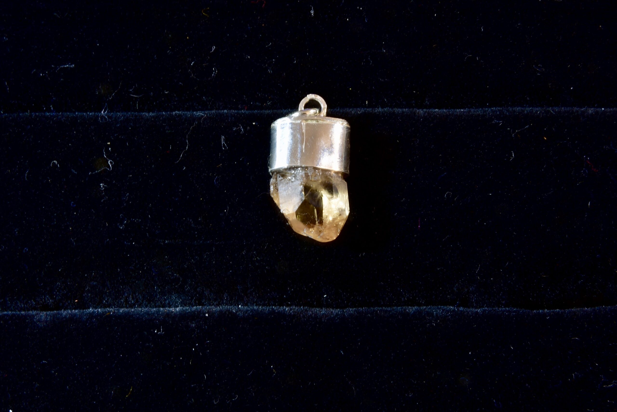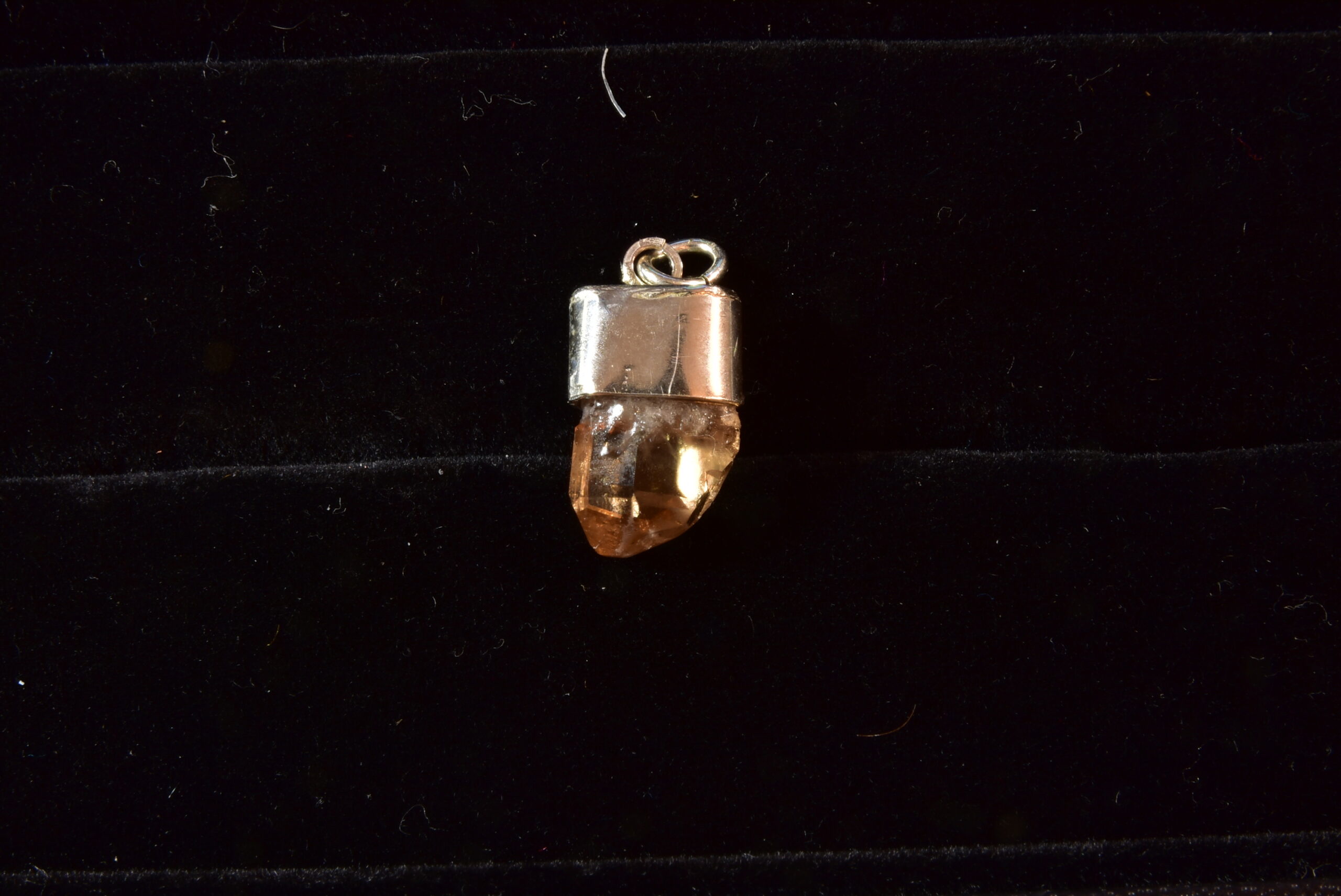 Jake found this Topaz crystal while at Topaz Mountain in Utah.  Topaz Mountain is an amazing area, with the chance to find all kinds of gemstones, but is most famous for its Topaz.  While he was out there, Jake found a lot of Topaz, but only a few pieces that were large enough to use as a raw crystal like this one.  This stone is set with a sterling silver cap.